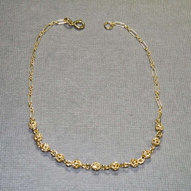 My Ankle Bracelets are made with Sterling Silver and 14K Gold Filled. The description on each item will list which semi-precious stone and precious metal I used to make it.