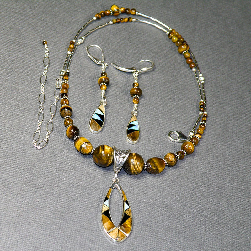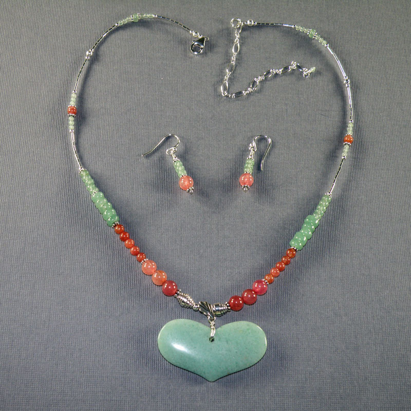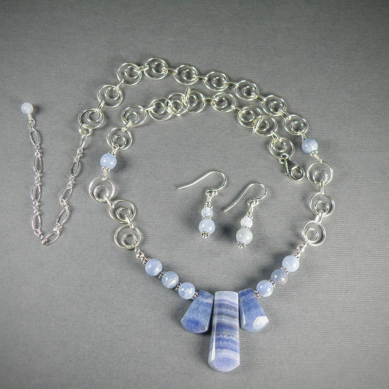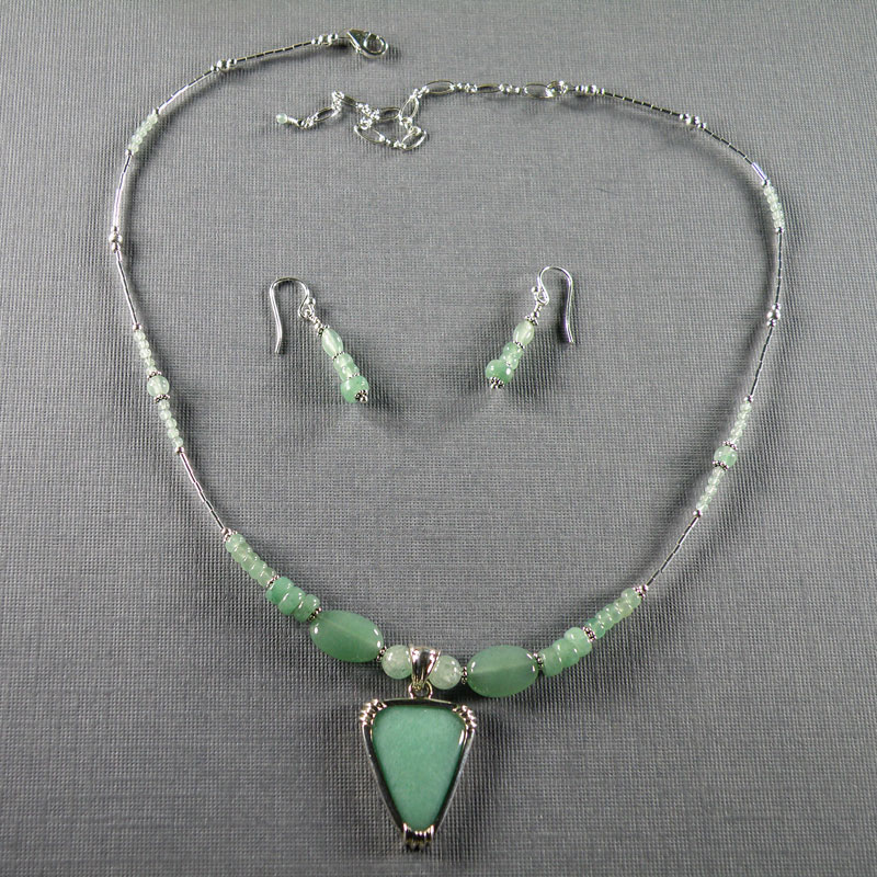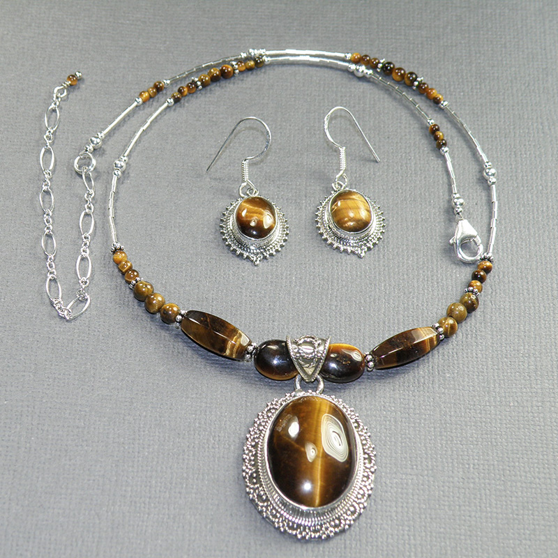 My necklace earring sets are available in sterling, 14Kgf, antique copper and antique brass. The description on each item will list which semi-precious stone and precious metal I use to make it.