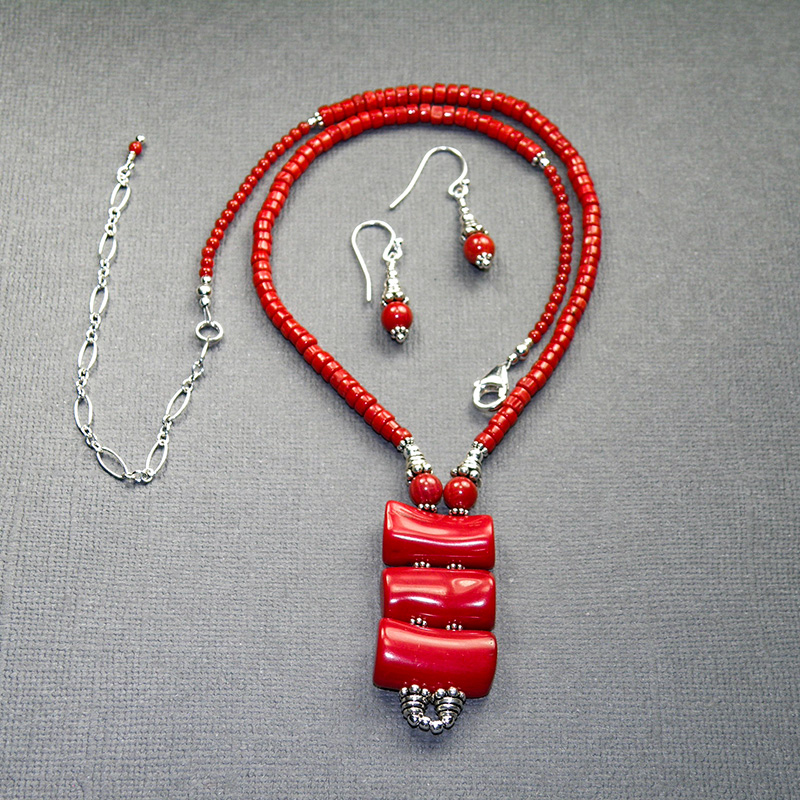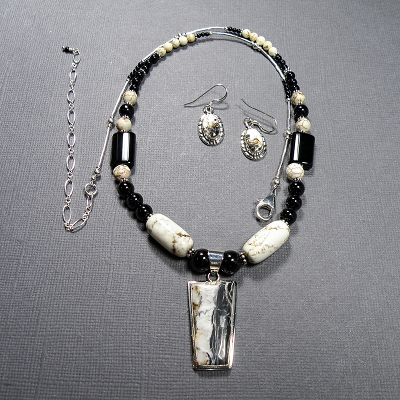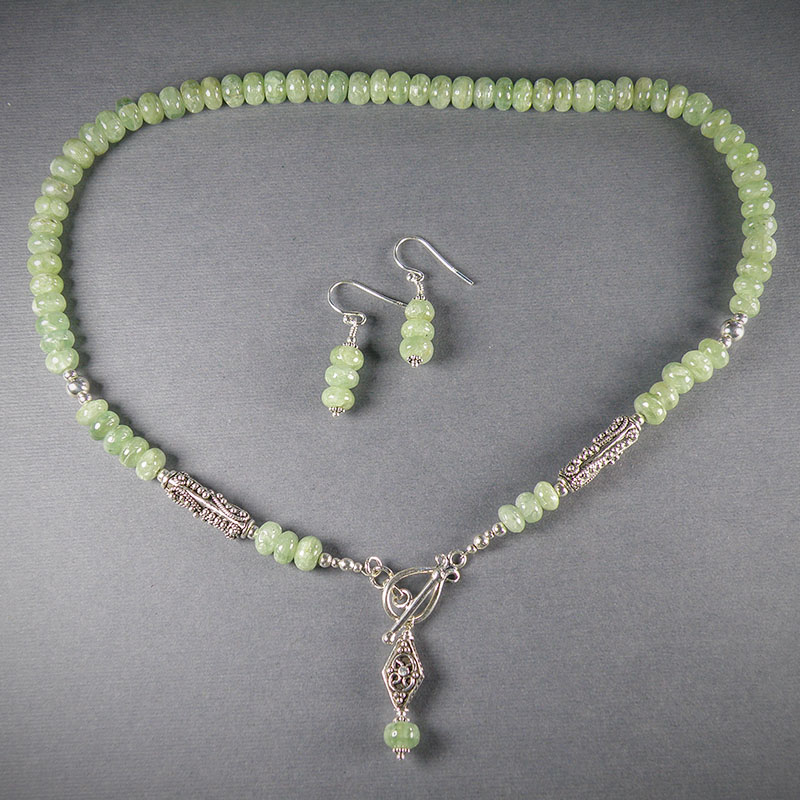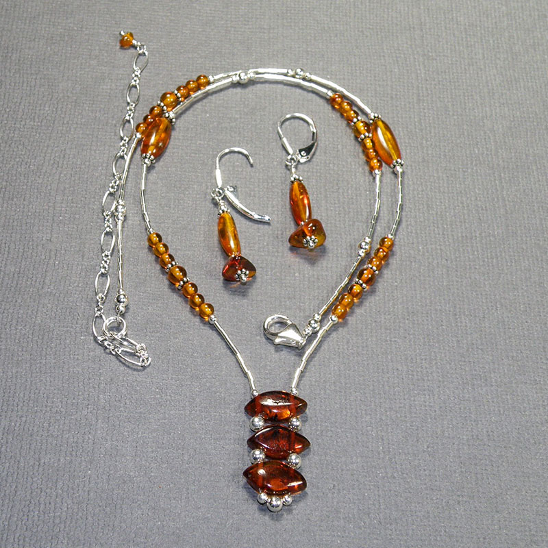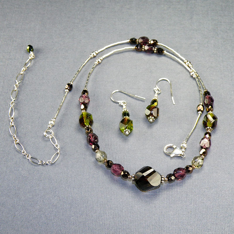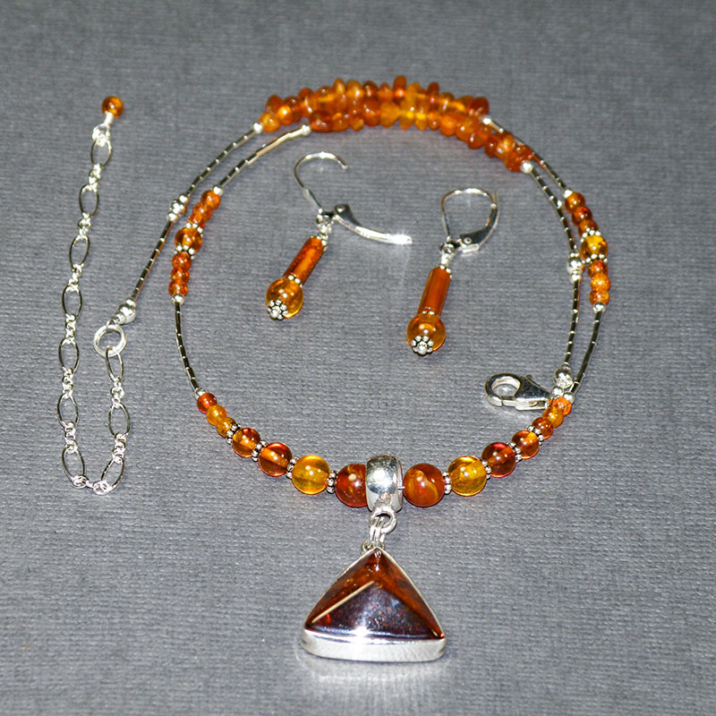 My necklace earring sets are available in sterling, 14Kgf, antique copper and antique brass. The description on each item will list which semi-precious stone and precious metal I use to make it.